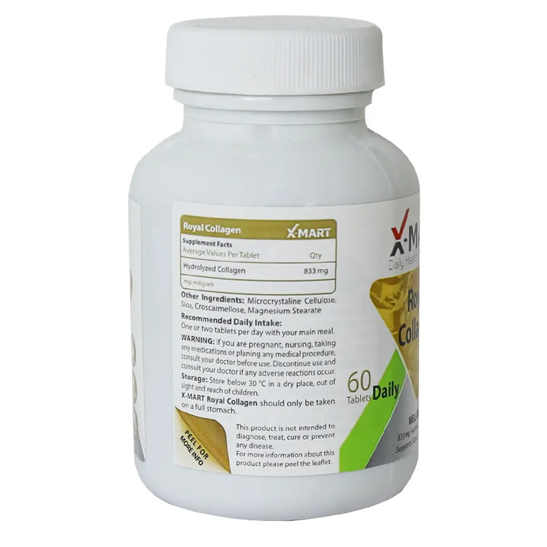 - هر قوطی از قرص رویال کلاژن ایکس مارت حاوی 60 عدد قرص میباشد.