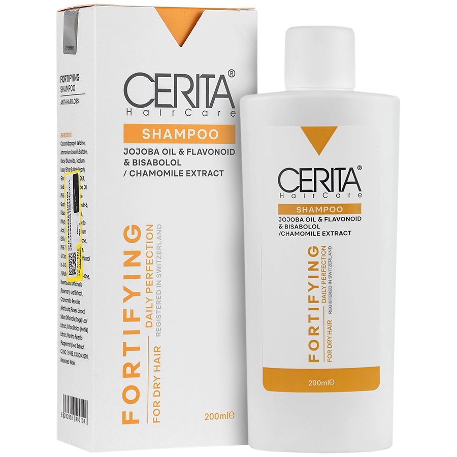 شامپو ضد شوره مناسب موهای خشک سریتا 200 میلی لیتر حاوی عصاره های گیاهی متعددی چون رزماری، بابونه، گزنه، جوجوبا، نعنا فلفلی و مریم گلی است. ترکیبات موجود در شامپو تقویت کننده مناسب موهای خشک سریتا، ویتامین ها، مواد معدنی و مغذی لازم برای رشد موها را تامین کرده و به نرمی و حالت پذیری موهای خشک و شکننده کمک می کند.