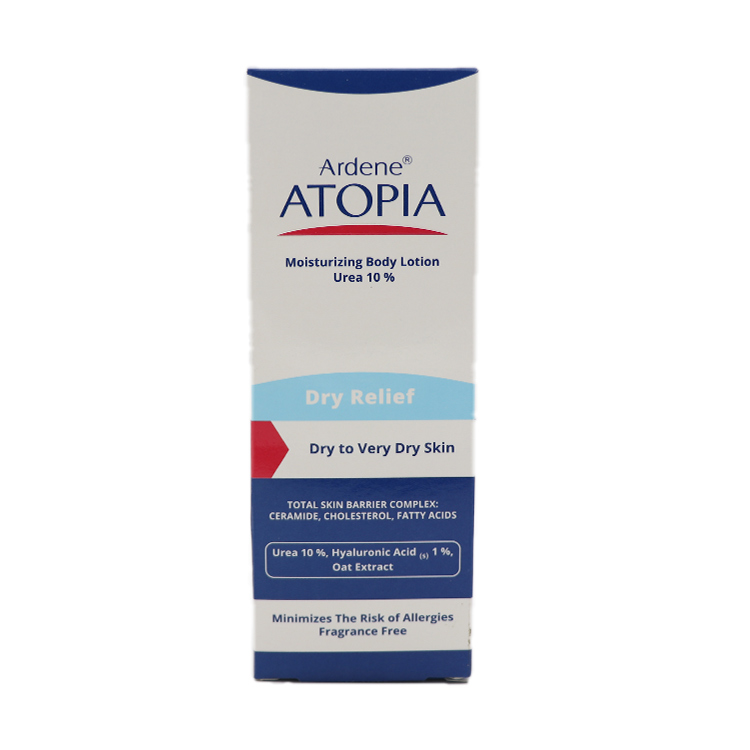 لوسیون بدن 10 درصد اوره اوسرین آتوپیا آردن بر پایه هیالورونیک اسید %1 و اوره %10 جهت رفع زبری،پوست ریزی و خشکی پوست بدن توسط شرکت پارس حیان فرآوری شده است. این لوسیون رطوبت و نرمی پوست را به مدت طولانی حفظ نموده و از ضخیم شدن پوست بدن جلوگیری می کند. لوسیون بدن اوره اوسرین آتوپیا آردن برای پوست های خشک و خیلی خشک تولید شده و می توان آن را در تمام فصول سال مصرف نمود.