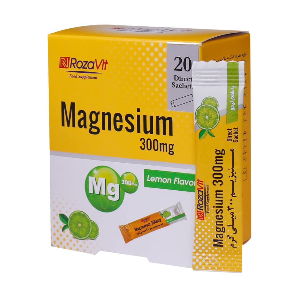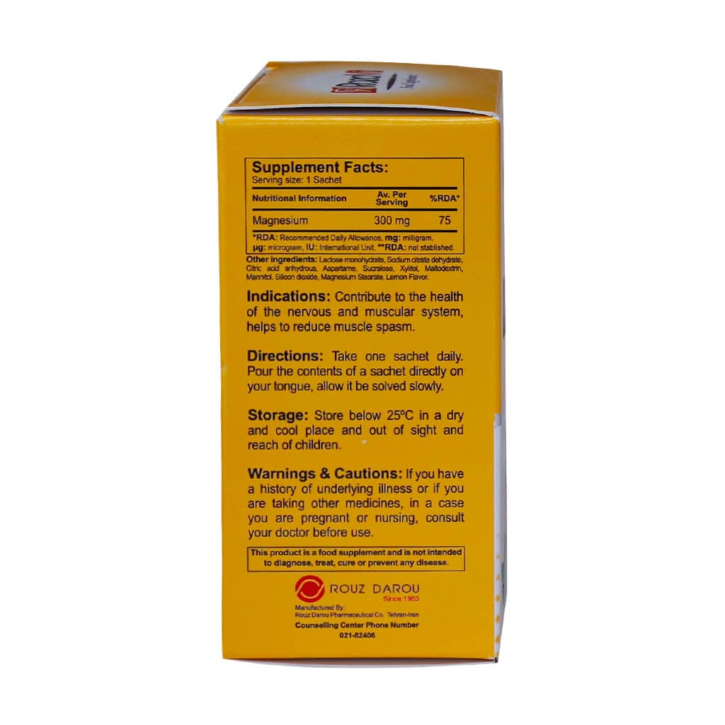 • ساشه منیزیم رزاویت حاوی 300 میلی گرم منیزیم به ازای هر ساشه