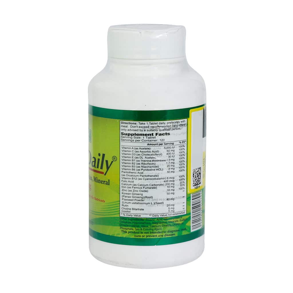 قرص مولتی دیلی آلفا ویتامین Multi Daily Alfa Vitamins از جمله مکملهای مولتی مینرال است که با تامین ویتامینهای محلول در چربی و محلول در آب، مینرالهای مورد نیاز روزانه و ترکیبات ویژهای مانند جینسینگ کرهای، پودر دانه کتان و کولین، در حفظ سلامت عمومی بدن و افزایش انرژی روزانه موثر است.