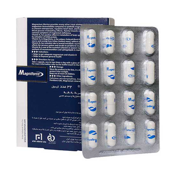 مگنیفورت یک مکمل غذایی تخصصی است که با فرمولاسیونی کامل و طبیعی برای حمایت از سلامت عمومی بدن و رفع کمبودهای تغذیه‌ای طراحی شده است. این کپسول توسط شرکت آرین سلامت سینا در قوطی‌های 32 عددی عرضه می‌شود. مگنیفورت با بهره‌گیری از منیزیم دریایی به‌همراه ویتامین‌های ضروری D3 ،B6 ،B1 و K2-7، نه‌تنها به تأمین مواد معدنی و ویتامین‌های حیاتی مورد نیاز بدن کمک می‌کند، بلکه در بهبود عملکرد عضلات، سلامت استخوان‌ها، حفظ تعادل سیستم عصبی و ارتقاء سطح انرژی نقش بسزایی دارد. منیزیم موجود در مگنی فورت از نوع طبیعی و با جذب بالا بوده و ویتامین D3 آن از منشأ گیاهی گلسنگ ایسلندی تهیه شده است که این ویژگی‌ها مگنیفورت را به گزینه‌ای سالم و ایمن برای مصرف روزانه تبدیل می‌کند.