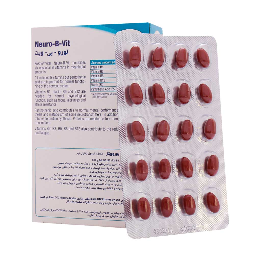 • کپسول نورو بی ویت یوروویتال، موثر در سنتز انتقال دهنده‌های عصبی