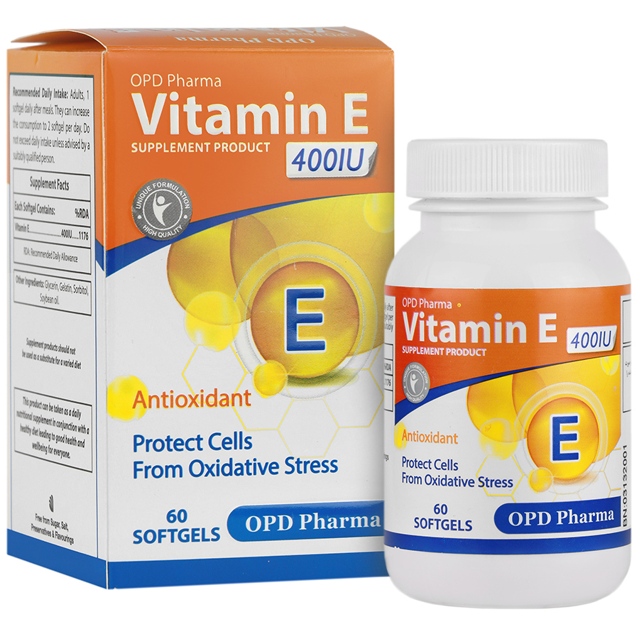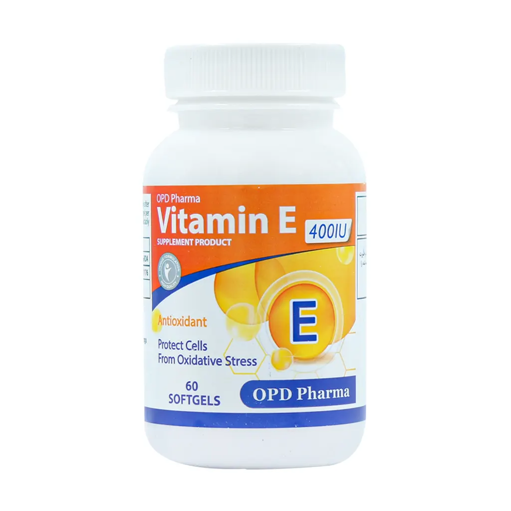 - ویتامین ای 400 واحدی 60 عدد OPD Pharma، حاوی ویتامین E با دوز 400 واحد بینالمللی (IU) در هر سافتژل