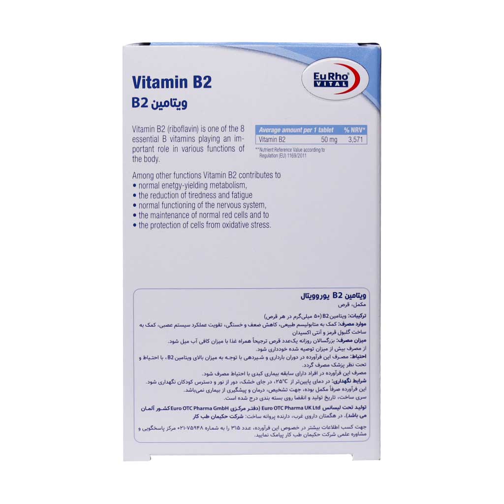 - هر جعبه از ویتامین ب2 یوروویتال مناسب برای استفاده به مدت 60 روز است.