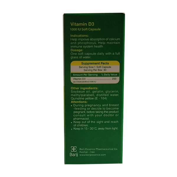 - ویتامین دی 3 باریویتال، حاوی 25 میکروگرم ویتامین D در هر سافت ژل