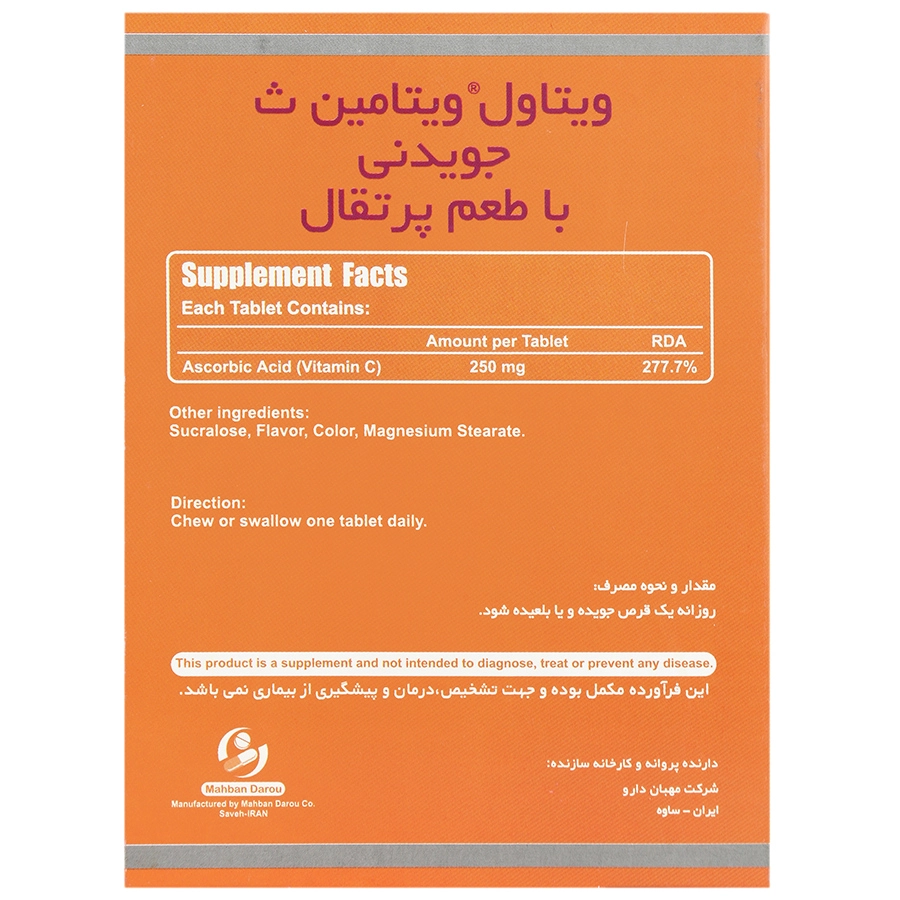 - ویتامین سی ویتاول ارائه شده به فرم قرص جویدنی