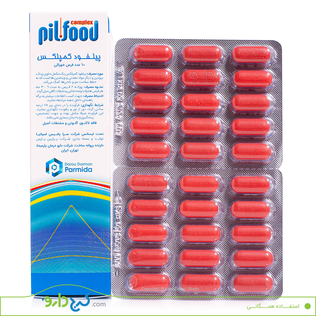- مدت زمان استفاده از قرص pilfood کمپلکس، برای مشاهده اثربخشی 3 تا 6 ماه می باشد.