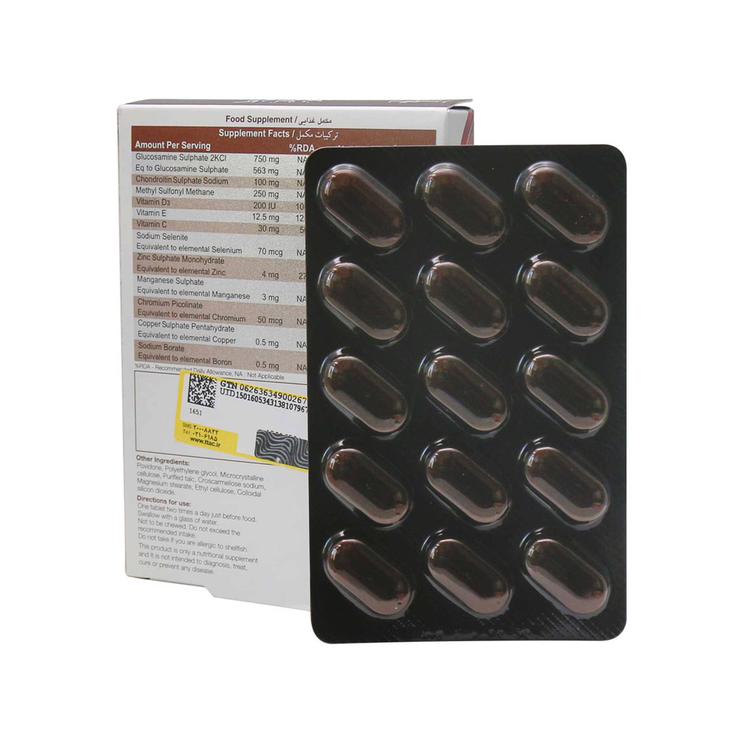 • دارای فرمولاسیون اختصاصی متشکل از ترکیبات موثر در سلامت مفاصل، ویتامین‌ها و مواد معدنی