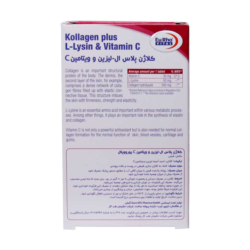 قرص کلاژن پلاس یکی از محصولات کلاژن یوروویتال بوده که دارای فرمولی منحصر به فرد برای حفظ و جبران ذخایر کلاژن بدن می باشد. این محصول حاوی 500 میلی گرم کلاژن هیدرولیز شده با منشأ دریایی به همراه آمینو اسید ال لیزین و ویتامین سی می باشد. اجزای قرص کلاژن پلاس ال لیزین با تقویت اثر یکدیگر کمک می کنند، پوستی نرم و لطیف، انعطاف پذیر با رطوبت کافی داشته باشید. این محصول همچنین برای ترمیم آسیب های عضلات و حفظ سلامت مفاصل و استخوان ها نیز مفید می باشد.